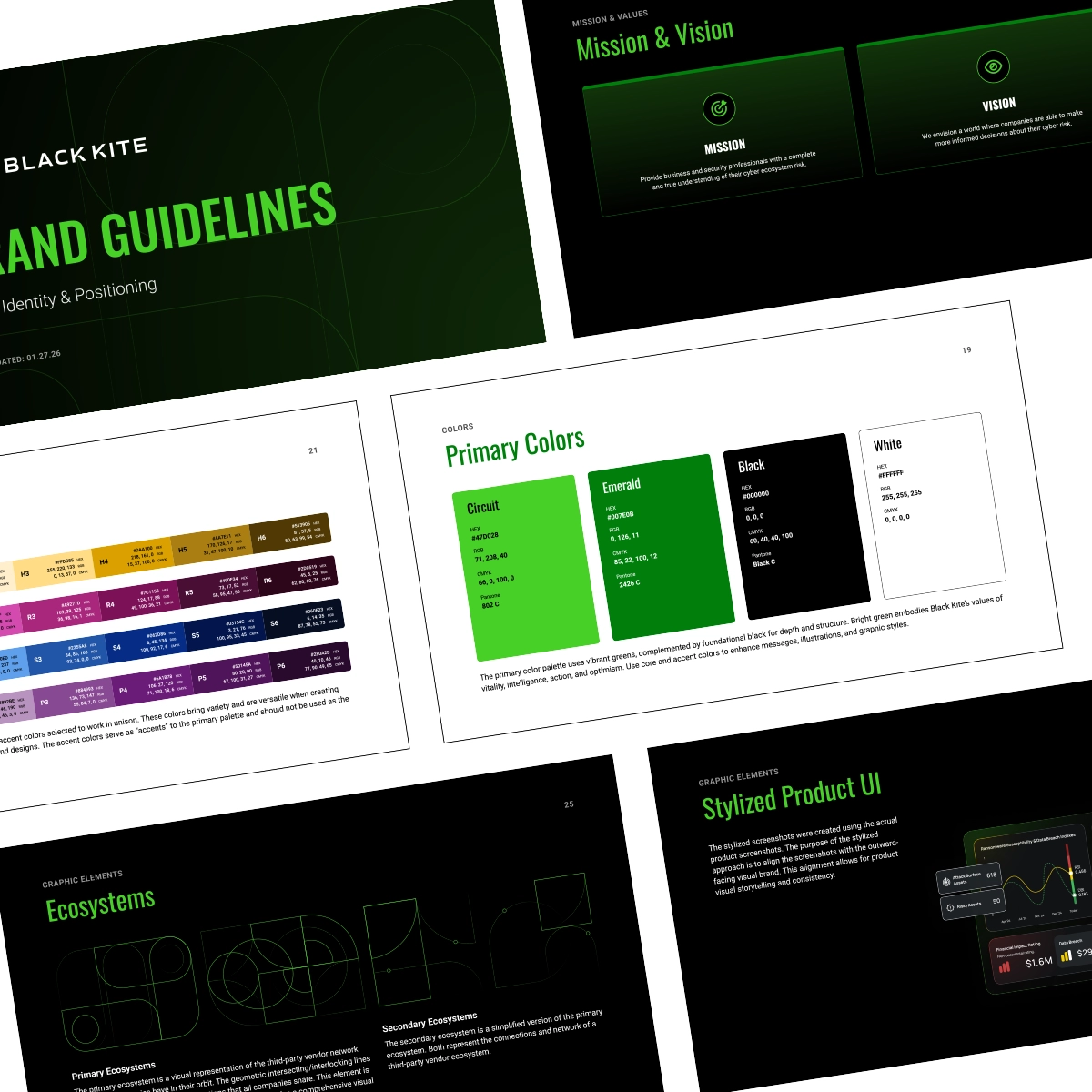 When Black Kite approached us, their brand had served its purpose—but it was time to evolve. We reimagined every aspect: developing a refined visual identity, crafting a graphic language rooted in the "Ecosystem" motif, and completely redesigning blackkite.com to deliver a bold, enterprise-ready digital experience. The result is a brand and website that not only look the part, but also clearly signal where Black Kite is headed.